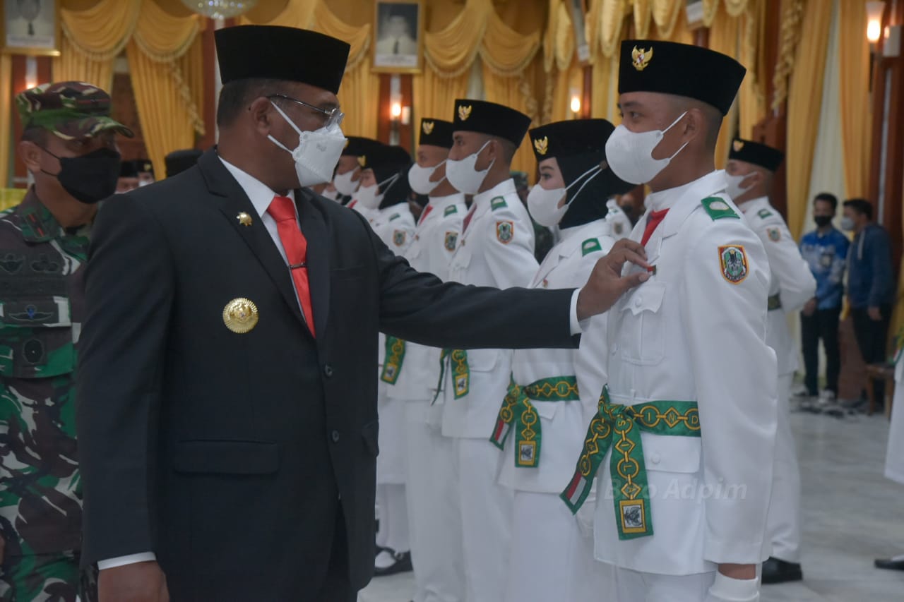 Pengukuhan Paskibra Provinsi Kalsel 2021 itu di Gedung Mahligai Pancasila, Minggu (15/8/2021) malam.