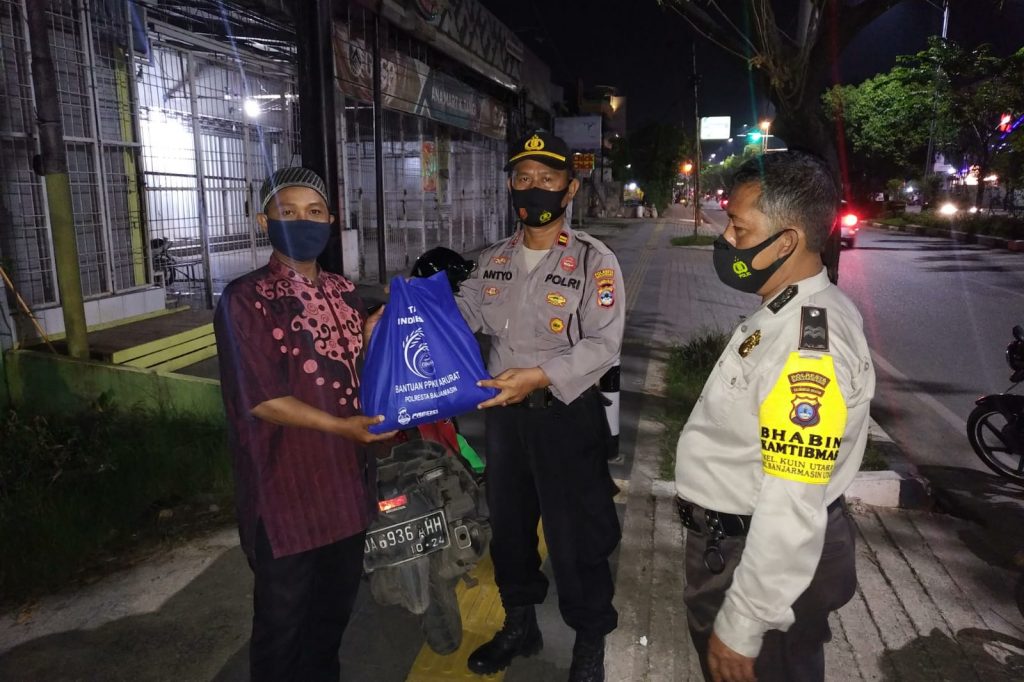 Polsek Banjarmasin Utara juga bersama Babinsa serta relawan emergency membagikan dua ribu sembako, ada 250 sak beras isi lima kilogram untuk warga miskin di Banjarmasin Utara yang terdampak Covid-19.