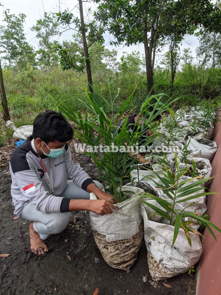 WARTABANJAR.COM, BANJARBARU – Penerapan PPKM Level 4 di Banjarbaru, aktifitas belajar mengajar belum secara tatap muka. Siswa SMKN 4 Banjarbaru mengisinya dengan kegiatan menanam jahe merah.