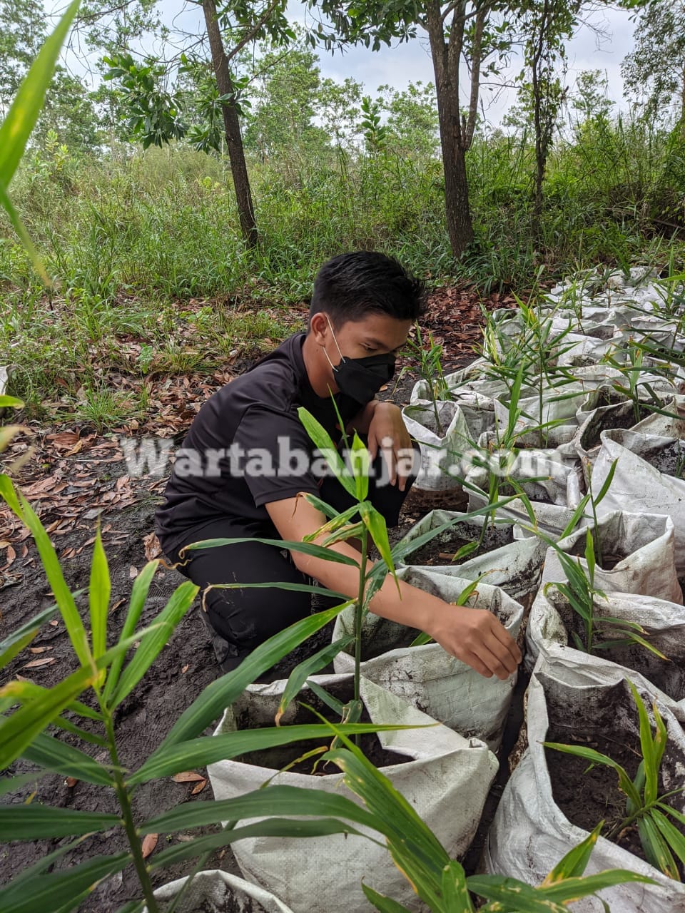 WARTABANJAR.COM, BANJARBARU – Penerapan PPKM Level 4 di Banjarbaru, aktifitas belajar mengajar belum secara tatap muka. Siswa SMKN 4 Banjarbaru mengisinya dengan kegiatan menanam jahe merah.
