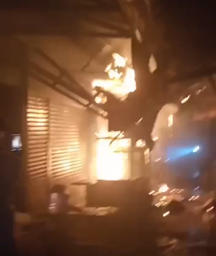 Api terlihat berkobar membakar toko yanh ada di pasar tersebut.