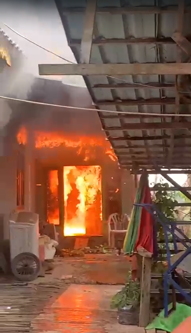 Api berkobar cukup besar dan dengan cepat melumat bangunan bagian belakang, sepertinya dapur, sebuah rumah semi permanen.