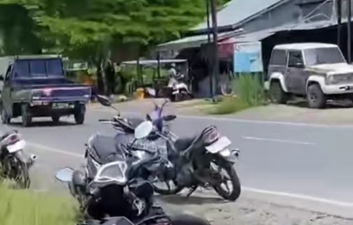 Diinfokan sepeda motor yang ditumpangi empat orang, dua orang anak dan orangtua terjatuh usai melewati lubang jalan.