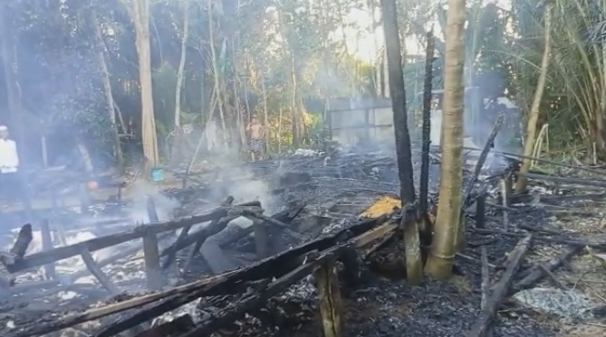 Satu rumah habis terbakar atau 100 persen dihuni Halimah dan Pahriani.