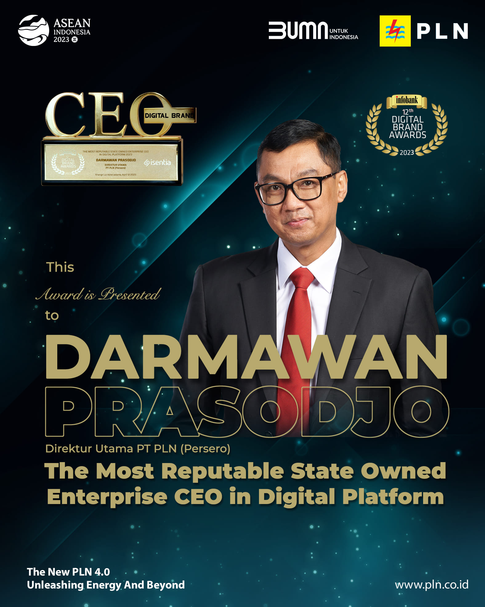 Ide dan upaya transformasi digitalnya di PLN juga mampu membawa perusahaan listrik negara ini menjadi “The Highest Digital Index” Perusahaan BUMN 2023, dan “The Best” Perusahaan BUMN 2023 Aset >100 Triliun dari Infobank.