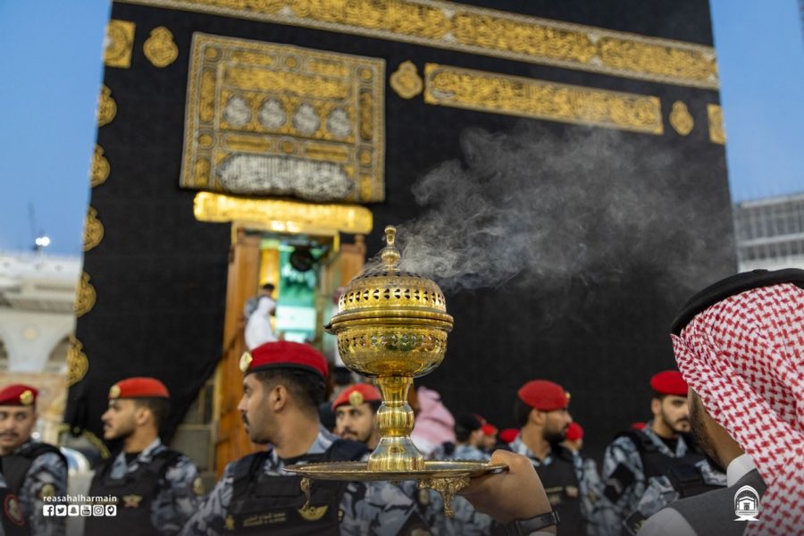 Usai pembersihan, sejumlah petugas kemudian memberikan pewangi atau semacam dupa wangi yang dibakar di sekeliling Kakbah untuk mengharumkan Kakbah.