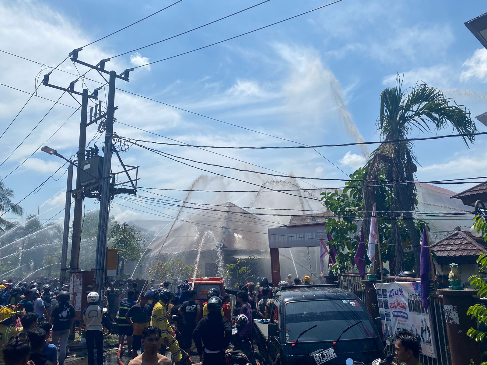 Dari pantauan di lapangan, terlihat warga setempat, relawan Emergency, dan Damkar Kota Banjarmasin, sedang melakukan upaya pemadaman.