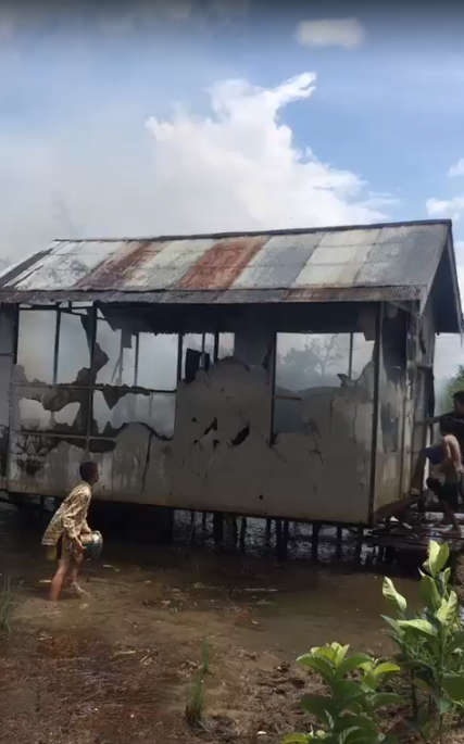 Dalam musibah ini satu rumah ludes terbakar, hanya tersisa sebagian dinding.