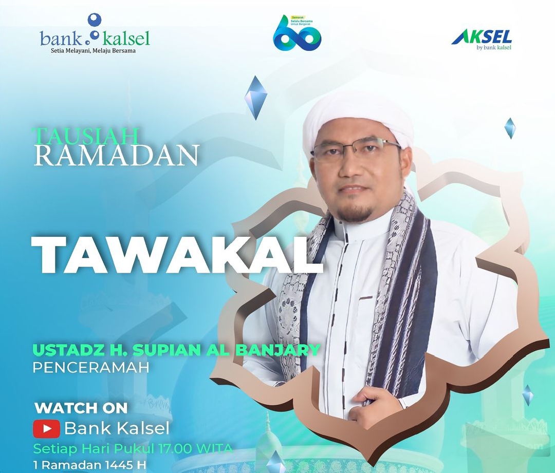 WARTABANJAR.COM, BANJARMASIN – Tausiah Ramadan 1 Ramadhan 1445 H di youtube Bank Kalsel mengangkat tema “Tawakal” oleh Ustadz H. Supian Al Banjary.