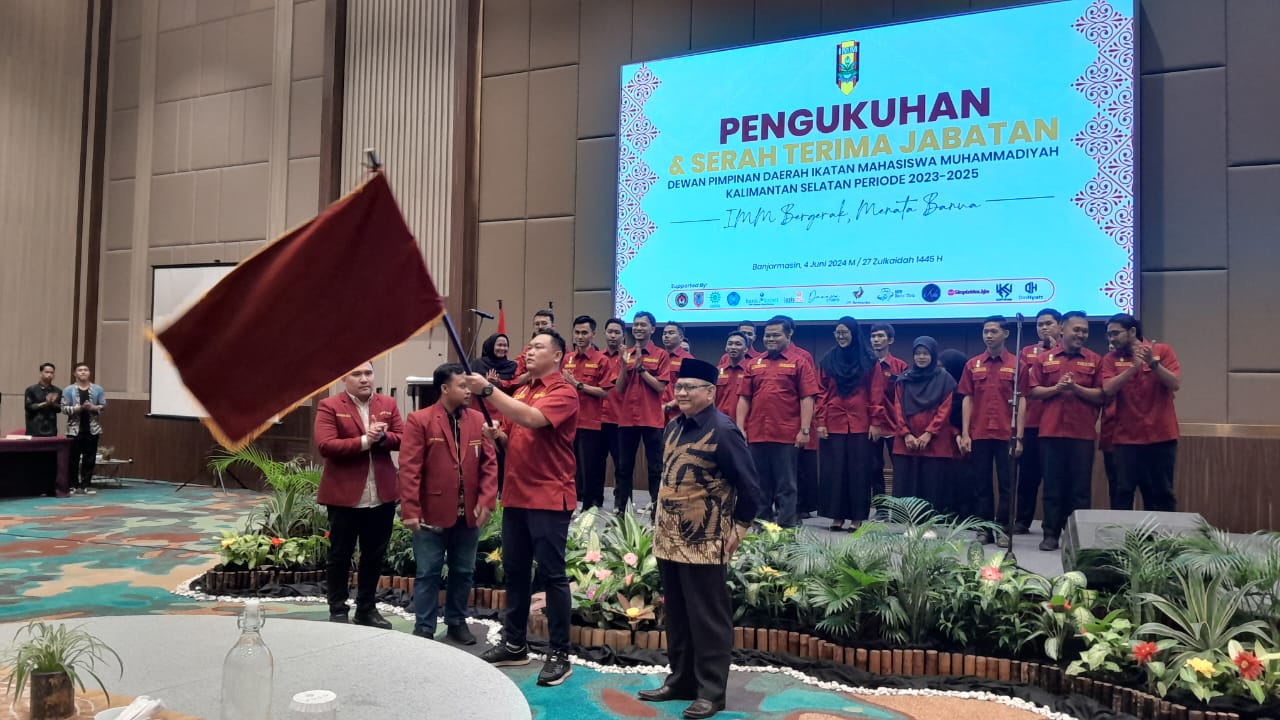 WARTABANJAR.COM, BANJARMASIN – Pengurus Dewan Pimpinan Daerah (DPD) Ikatan Mahasiswa Muhammadiyah (IMM) Kalimantan Selatan (Kalsel) periode 2023-2025 secara resmi dikukuhkan. Acara pengukuhan yang dilaksanakan di Ballroom Fugo Hotel Banjarmasin ini disumpah langsung Ketua Umum DPP IMM, Riyan Betra Delza. Selasa (04/06/2024).