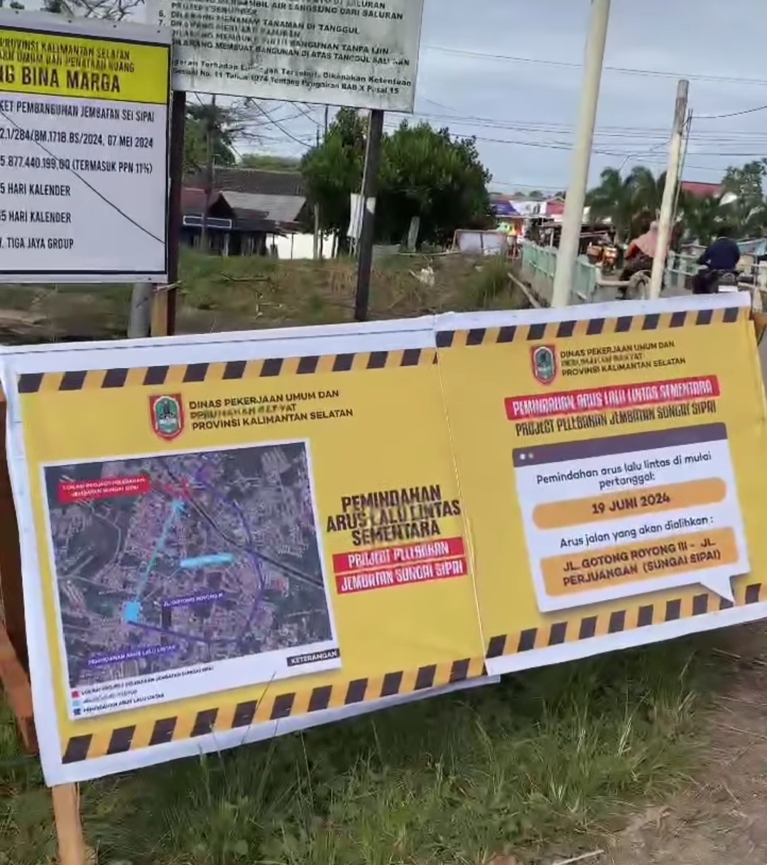WARTABANJAR.COM, BANJAR – Arus lalu lintas di Jembatan Sungai Sipai di Jalan Taruna Praja Raya Kecamatan Martapura, Kabupaten Banjar ditutup mulai hari ini, Rabu (19/6) hingga Desember 2024.