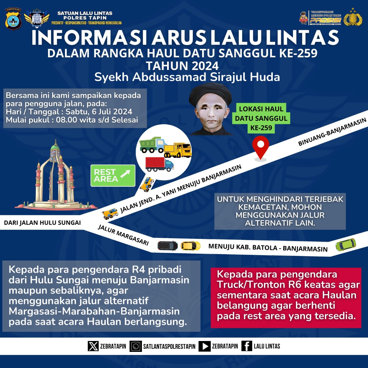 WARTABANJAR.COM, TAPIN – Rekayasa lalu lintas diberlakukan di Haul Datu Sanggul ke-259 atau Syekh Abdussamad Sirajul Huda di Kabupaten Tapin.