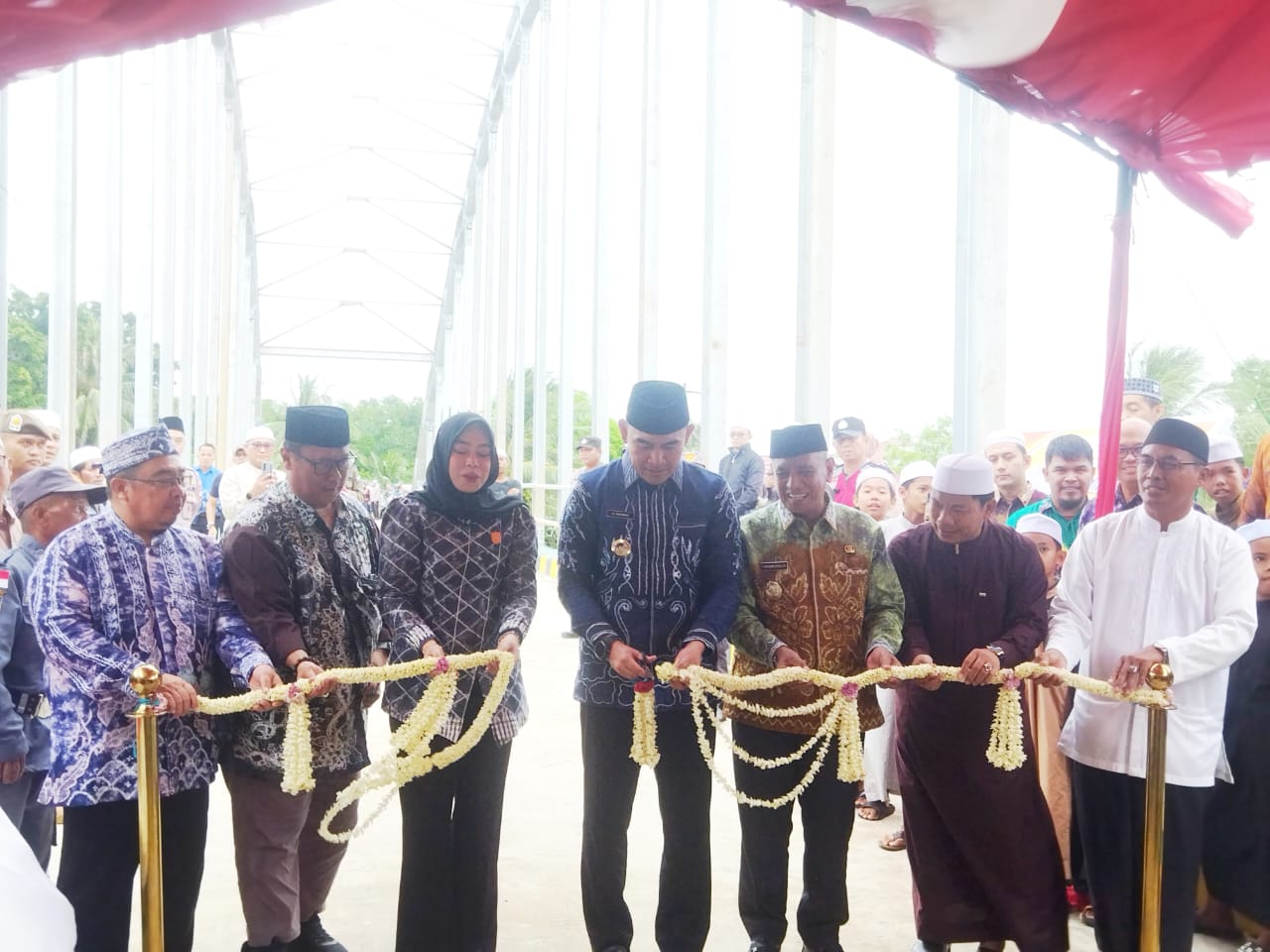 Acara ini ditandai dengan penandatanganan prasasti dan pemotongan melati sebagai simbolis pembukaan jembatan.