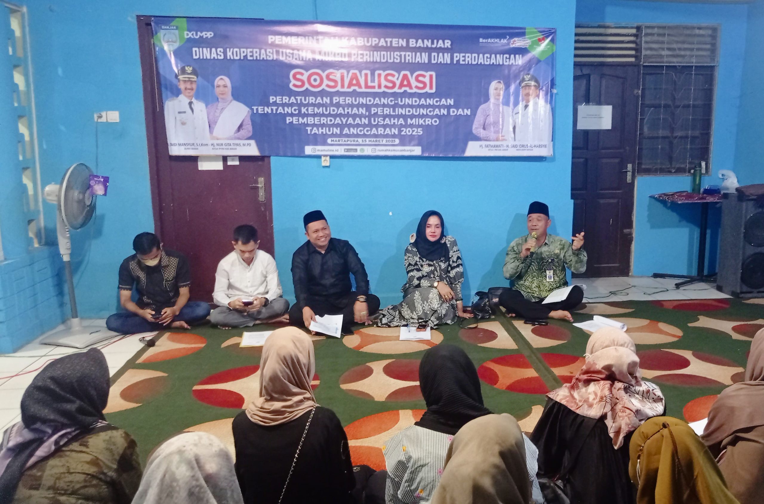 WARTABANJAR.COM, MARTAPURA- Dinas Koperasi, Usaha Mikro, Perindustrian dan Perdagangan (DKUMPP) Kabupaten Banjar melalui Bidang Usaha Mikro menggelar Sosialisasi Perundang-Undangan (Sosper) tentang Perlindungan dan Pemberdayaan Pengusaha Mikro di Aula KNPI Kabupaten Banjar, Sabtu (15/3/2025).