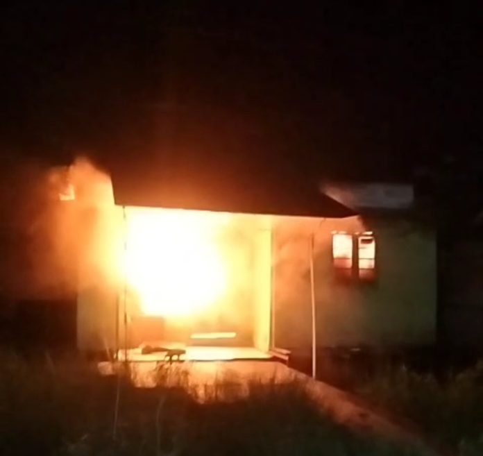 Terdengar ledakan dari rumah yang terbakar tersebut. Api terus membesar dan membakar hampir seluruh bagian rumah.