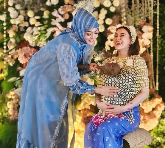 Aaliyah Massaid dan suaminya, Thariq Halilintar belum lama ini menggelar acara tujuh bulanan kehamilan pertama Aaliyah.