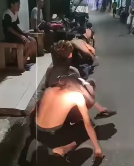Tampak dalam video mereka diamankan dengan berjalan jongkok menyusuri gang menuju mobil polisi.