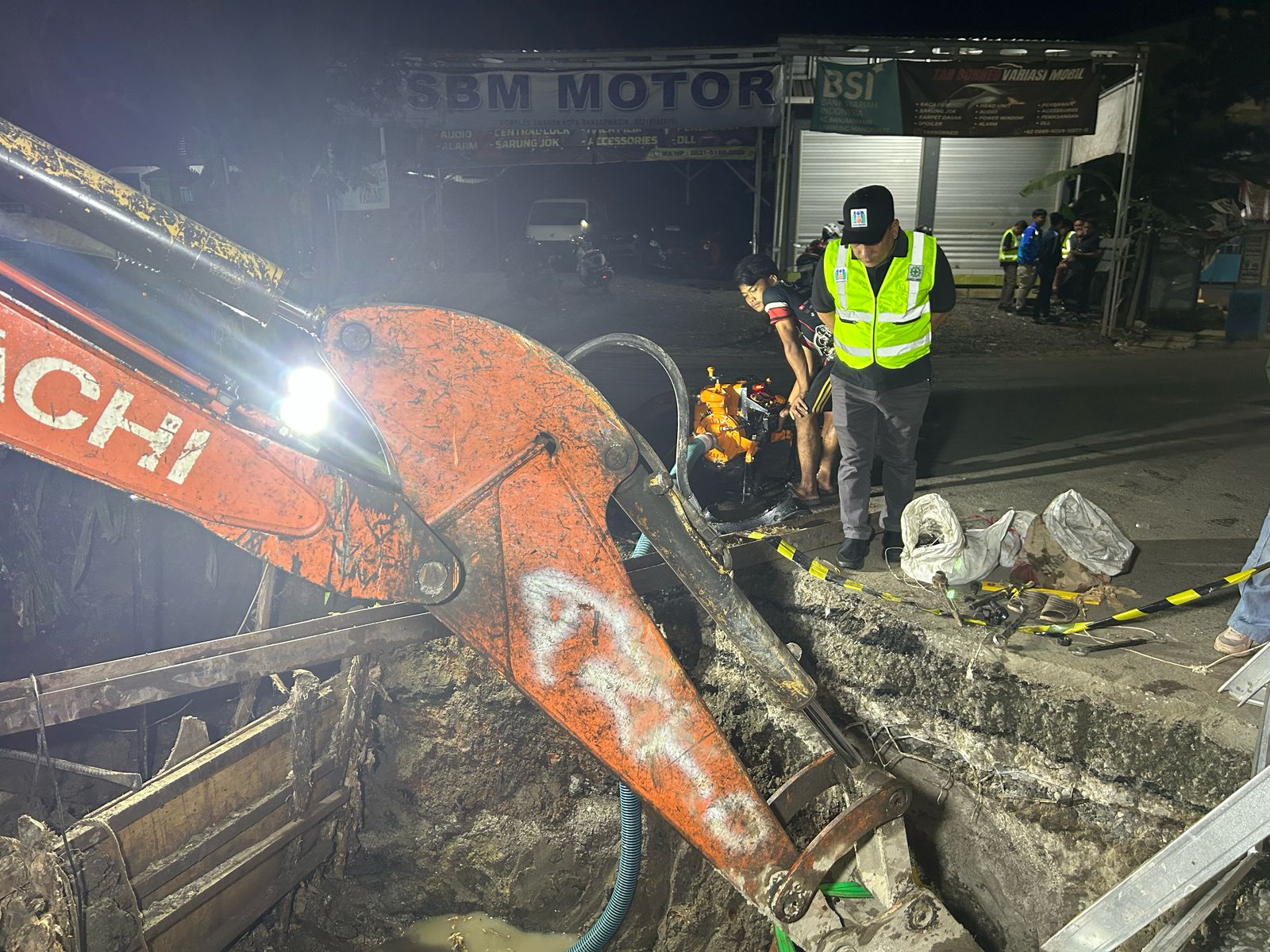 “Jadi saat ini tim sedang melakukan pengangkatan pipa T yang akan kita koneksikan, dan rencananya T itu akan kita taruh diatas, sehingga harapannya pekerjaannya bisa lebih mudah,” kata Edwarsah.