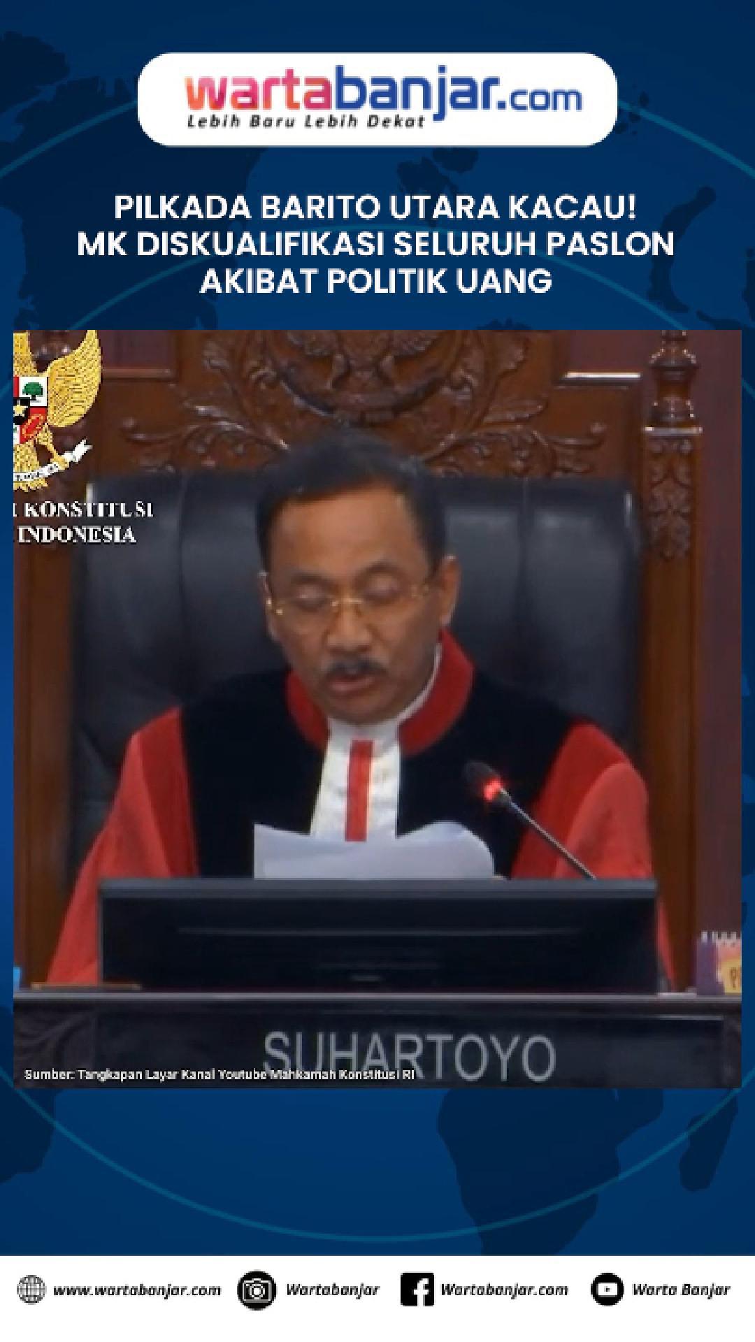 WARTABANJAR.COM, MUARA TEWEH – Mahkamah Konstitusi (MK) mengambil langkah tegas dengan mendiskualifikasi kedua pasangan calon (paslon) dalam Pemilihan Kepala Daerah (Pilkada) Kabupaten Barito Utara 2024. Keputusan ini dibacakan oleh Ketua MK, Suhartoyo, dalam sidang putusan sengketa hasil Pilkada pada Rabu (14/5/2025).