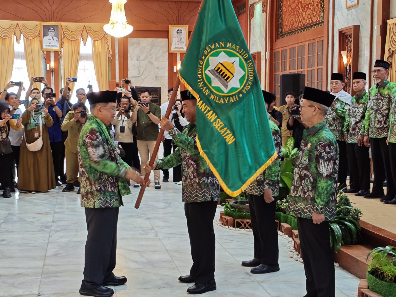 WARTABANJAR.COM, BANJARMASIN – Pengurus Pimpinan Wilayah Dewan Masjid Indonesia (PW DMI) Provinsi Kalimantan Selatan Masa Khidmat 2024–2029 resmi dikukuhkan Ketua Umum Dewan Masjid Indonesia (DMI) Pusat, HM Jusuf Kalla di Gedung Mahligai Pancasila, Banjarmasin, Senin (26/5/2025).