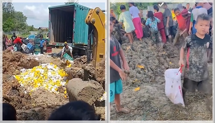 Namun, alih-alih menjauhi lokasi, warga justru berbondong-bondong menggali tumpukan tanah demi mendapatkan mangga yang masih utuh. Dalam video yang tersebar luas, tampak warga dari berbagai usia—termasuk anak-anak—membawa karung dan plastik untuk mengangkut buah-buahan yang sudah tercemar zat kimia tersebut.