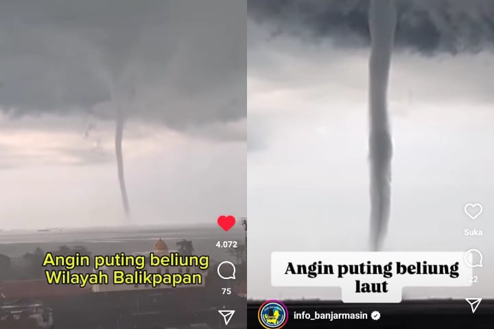 Dalam rekaman video oleh warga, yang beredar di media sosial, angin puting beliung itu terjadi di perairan atau laut Balikpapan.