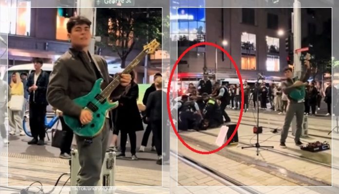 WARTABANJAR.COM, SYDNEY – Sebuah momen dramatis terekam dalam video yang viral di Instagram, memperlihatkan aksi penangkapan penjahat oleh polisi tepat di belakang seorang gitaris jalanan yang sedang tampil di Sydney, Australia.