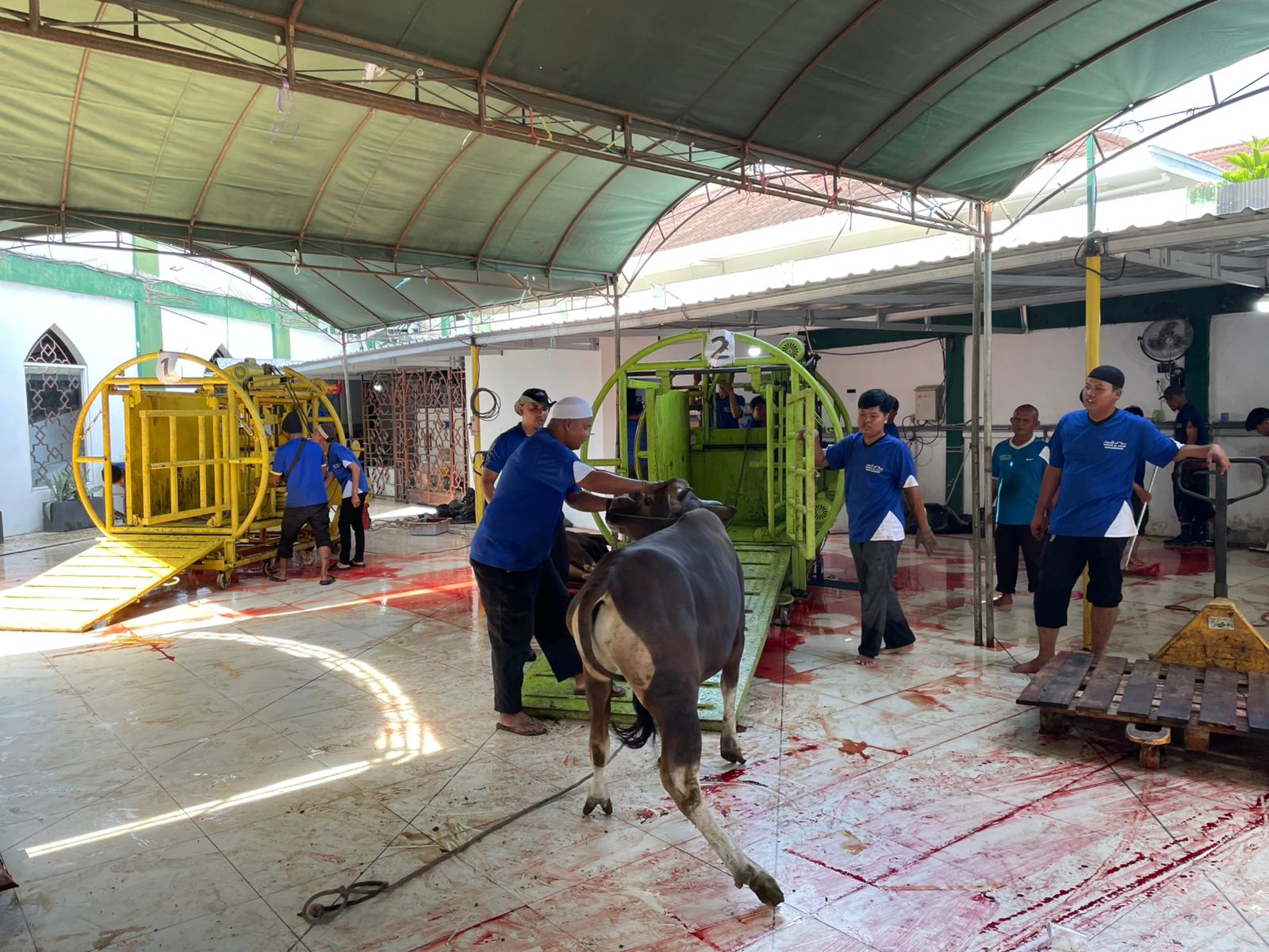 Untuk mendukung efisiensi, panitia menggunakan dua alat canggih yang mampu mempercepat proses penyembelihan dan penanganan hewan kurban secara aman dan sesuai syariat.