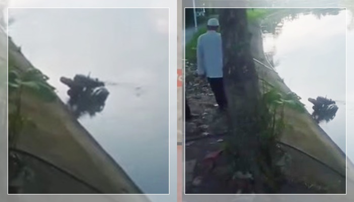 Belum diketahui pasti bagaimana sepeda motor itu bisa tercebur ke dalam saluran irigasi. Namun, dari rekaman yang beredar, tampak sejumlah warga berdatangan dan berusaha membantu evakuasi kendaraan tersebut dari dalam air.