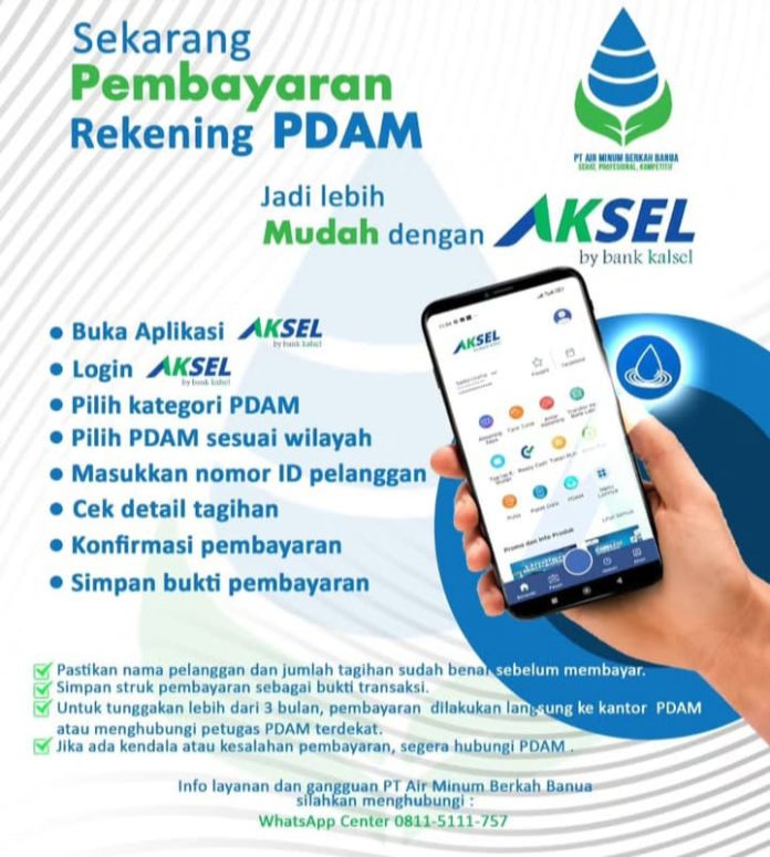WARTABANJAR.COM, BANJARMASIN- Tak ingin repot membayar tagihan PDAM ke loket? Sekarang bisa dilakukan dengan cara lebih mudah, yaitu melalui mobile banking.