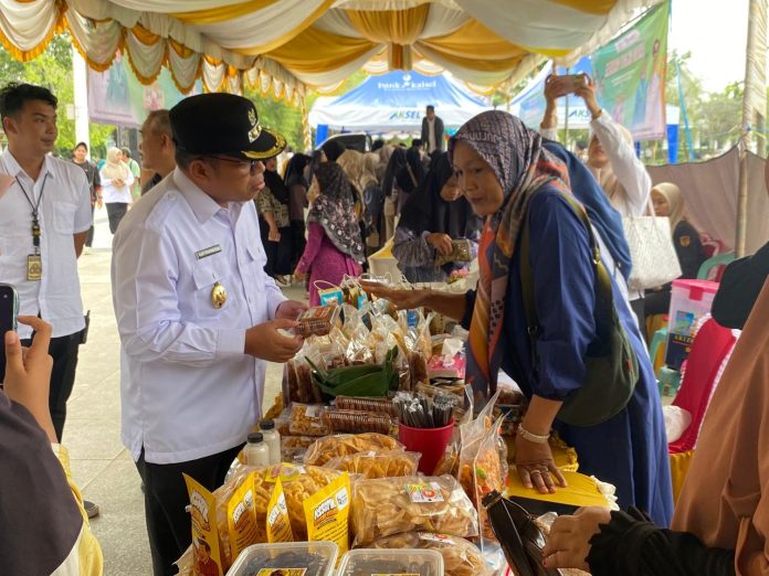 Wabup juga menyempatkan diri mengunjungi seluruh stan UMKM, berdialog langsung dengan pelaku usaha, mendengarkan aspirasi mereka, serta membeli produk lokal seperti “Rimpi Pisang” yang menjadi favorit pengunjung.