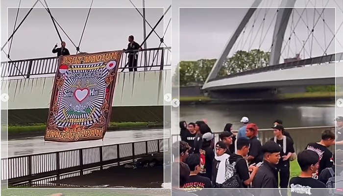 WARTABANJAR.COM, TOKYO – Sebuah aksi kontroversial dilakukan oleh komunitas Persaudaraan Setia Hati Terate (PSHT) Ranting Jepang yang dikenal berasal dari Madiun. Komunitas ini menjadi sorotan publik setelah membentangkan spanduk besar bertuliskan “PSHT Madiun” di sebuah jembatan umum dekat sungai di pusat Kota Tokyo, Jepang.