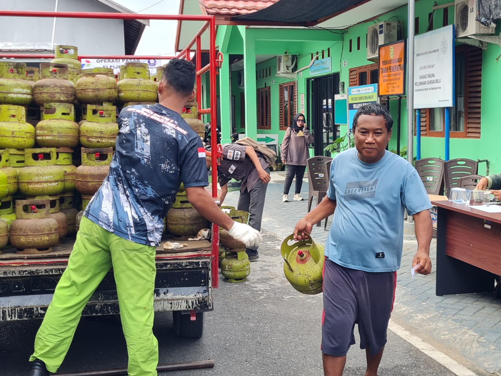 Bekerja sama dengan Pertamina, Pemko menggelar operasi pasar gas elpiji subsidi di Kelurahan Sungai Bilu, Kamis (3/7/2025).