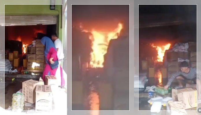 Warga sekitar tampak berjibaku membantu proses evakuasi dan pemadaman awal, sembari mengevakuasi barang-barang dagangan yang masih bisa diselamatkan.