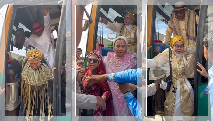 Rombongan jamaah haji ini tampak memukau dengan busana yang tertata apik, bak tamu undangan pesta mewah. Penampilan mereka langsung menyita perhatian publik dan memicu pro-kontra di jagat maya.