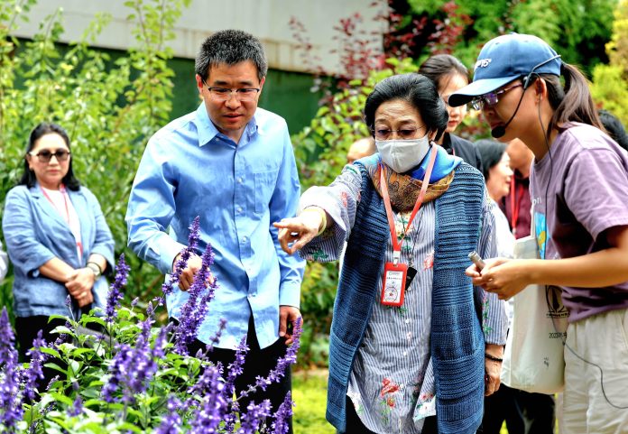 Tak hanya menikmati keindahan taman, Megawati juga sempat meninjau Pasar Bunga Dounan, salah satu pasar bunga terbesar di Asia. Di sana, ia menyampaikan pentingnya pengembangan flora Indonesia menjadi bagian dari industri nasional yang modern dan berdaya saing tinggi, termasuk melalui inovasi varietas baru tanaman hias berbasis riset ilmiah.