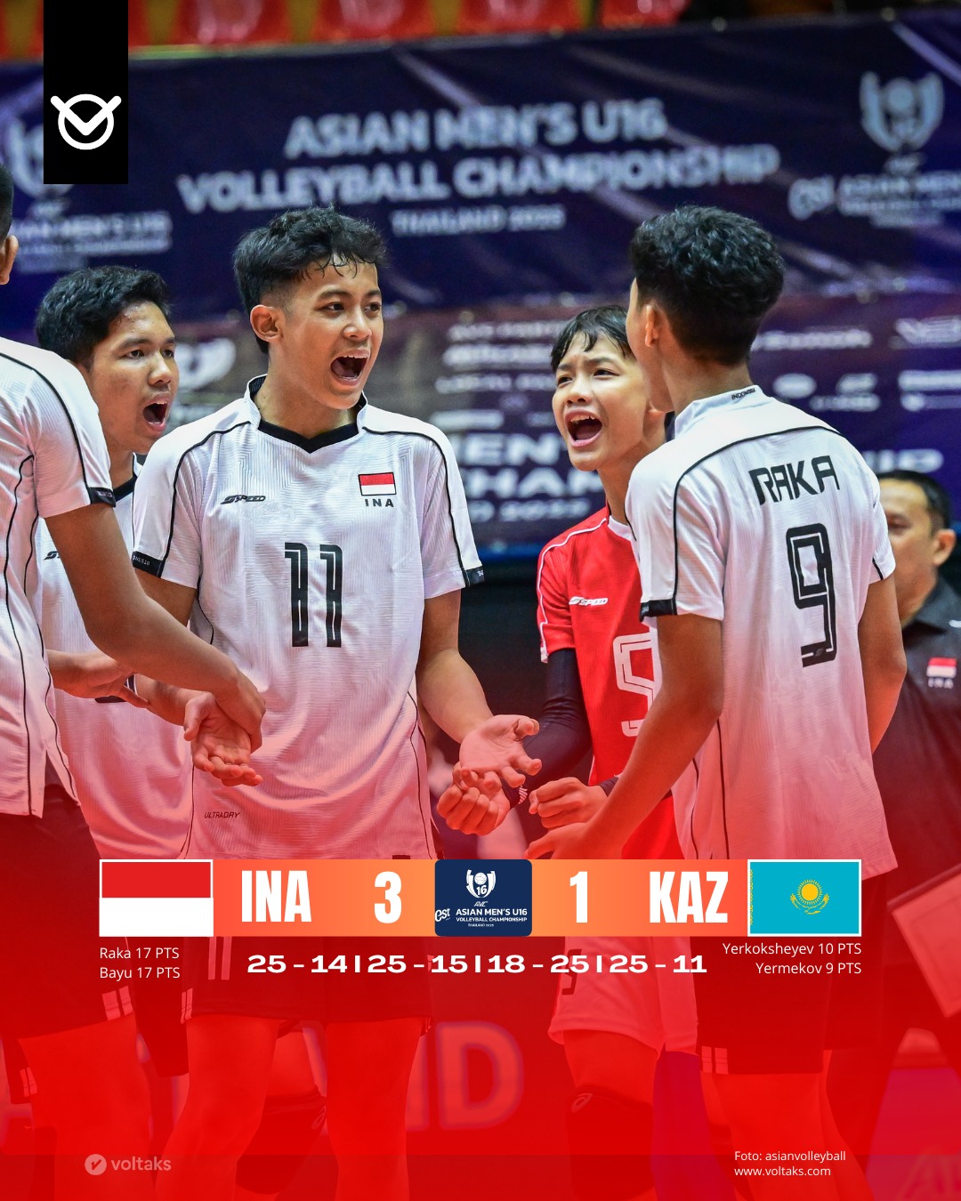 WARTABANJAR. COM, JAKARTA – Tim nasional voli putra Indonesia U-16 bangkit dengan gemilang di laga kedua Kejuaraan Voli Asia U-16 2025, usai menumbangkan Kazakhstan dengan skor meyakinkan 3-1 (25-14, 25-15, 18-25, 25-11), Minggu (13/7/2025), di Nakhon Pathom, Thailand.