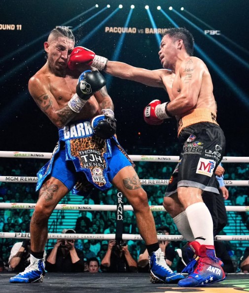 Namun, memasuki ronde keempat, stamina Pacquiao mulai menurun dan momentum berbalik ke tangan Barrios. Petinju asal Amerika itu meningkatkan tekanan dengan jab tajam dan kombinasi pukulan yang mulai menyulitkan sang legenda.