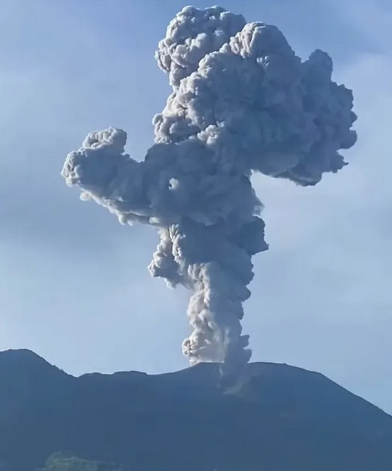 Lontaran abu vulkanik setinggi 1.600 meter atau 1,6 kilometer dari puncaknya dilaporkan menyertai letusan tersebut.