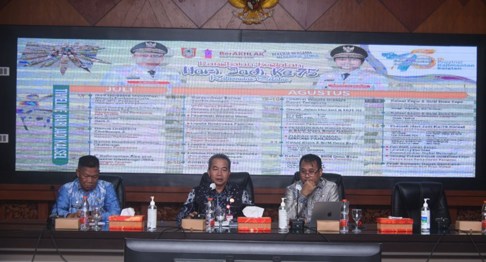 “Hari ini kita rapat semua panitia dalam persiapan Harjad Provinsi Kalimantan Selatan ke-75. Dan masing-masing seksi pelaksana melaporkan kesiapannya, Alhamdulillah sudah disampaikan semua dan semoga, Harjad Provinsi Kalsel akan menjadi meriah serta ada pesta rakyat nanti,” sampai Sekdaprov Kalsel, M. Syarifuddin seusai rapat.