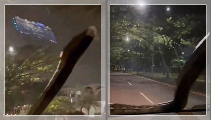 WARTABANJAR.COM – Sebuah video mendadak viral di media sosial TikTok, memperlihatkan momen menegangkan sekaligus menggelikan: seekor ular piton tiba-tiba melilit kaca depan mobil yang sedang melaju di jalan raya pada malam hari!