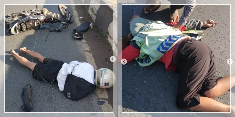 Video yang diunggah akun Instagram @peristiwabanua memperlihatkan dua orang korban terkapar di atas aspal. Satu di antaranya merupakan pengendara sepeda motor, sedangkan satu lagi adalah relawan pengatur lalu lintas atau biasa disebut SUPELTAS (Suka Relawan Pengatur Lalu Lintas).