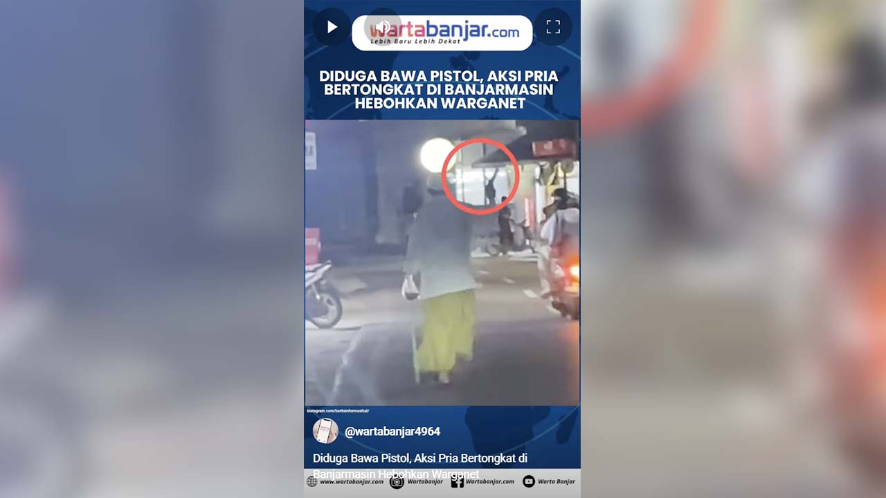 VIDEO – Diduga Bawa Pistol, Aksi Pria Bertongkat di Banjarmasin Hebohkan Warganet