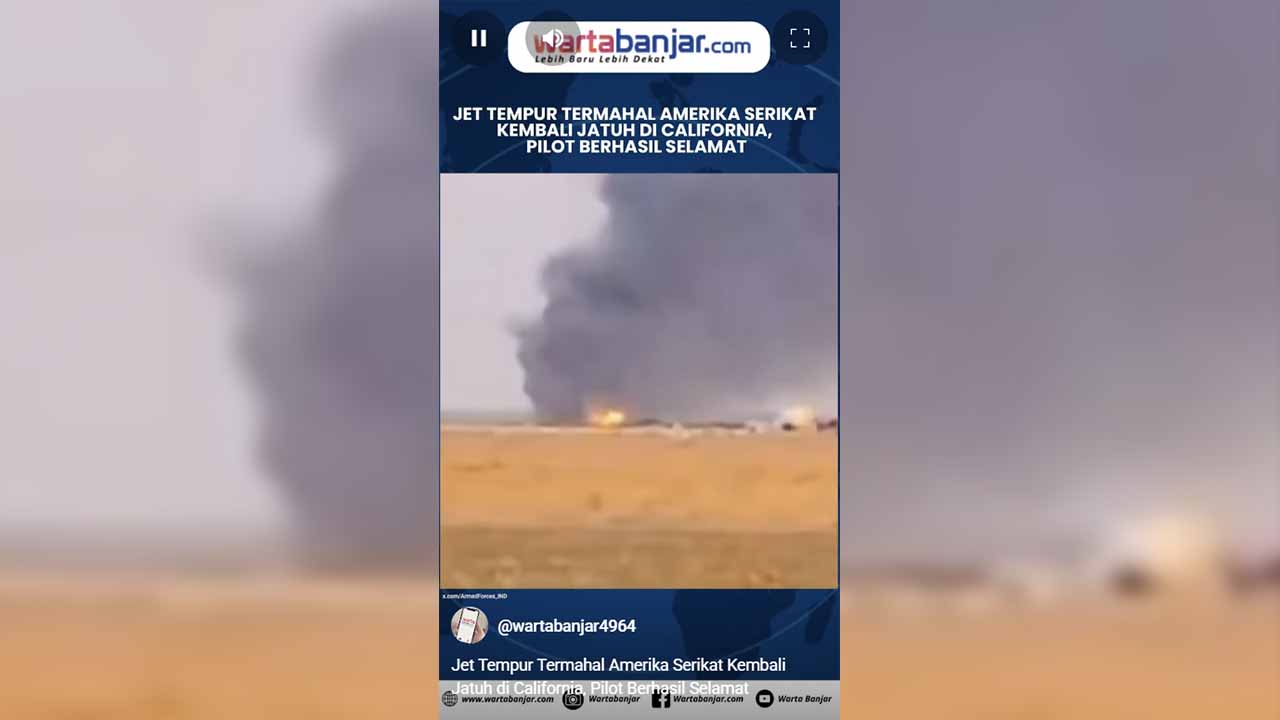 VIDEO – Jet Tempur Termahal Amerika Serikat Kembali Jatuh di California, Pilot Berhasil Selamat
