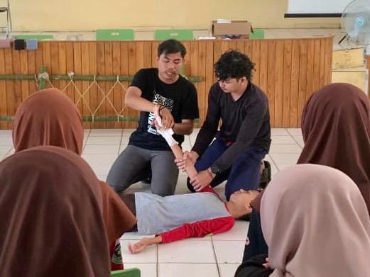 Usai sesi teori, para peserta langsung unjuk keterampilan melalui simulasi penanganan luka di lengan bawah dan patah tulang tungkai, lengkap dengan penggunaan alat penunjang medis darurat. Atmosfer pelatihan dipenuhi antusiasme, menunjukkan kesiapan mental para peserta menghadapi situasi nyata.