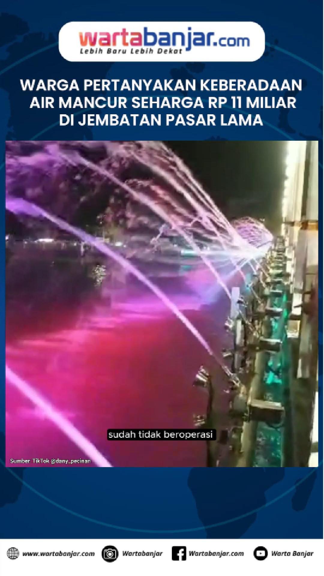 Pantauan wartabanjar.com pada Sabtu (2/8/2025) malam, tampak air mancur yang dihiasi lampu di Jembatan Pasar Lama tidak beroperasi seperti biasanya.