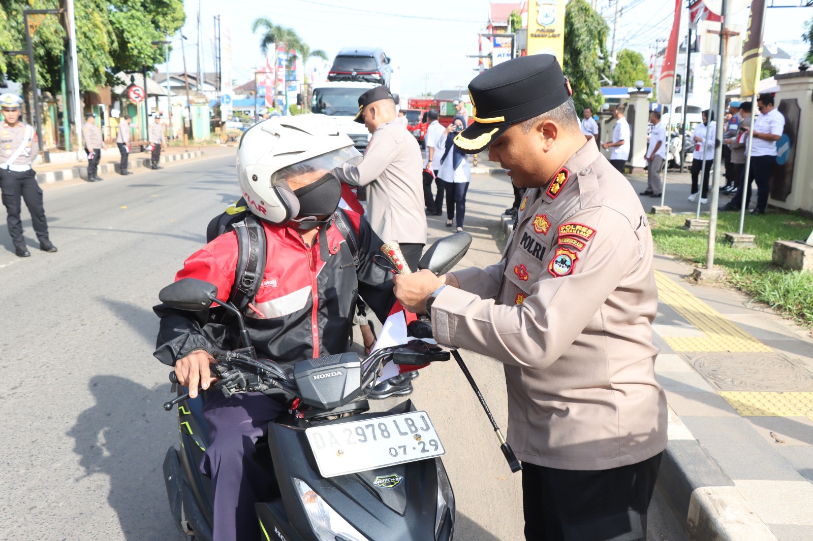 WARTABANJAR.COM, PELAIHARI – Polres Tanah Laut membagikan 500 bendera Merah Putih kepada para pengendara di depan Mapolres, Pelaihari, Kabupaten Tanah Laut, pada Rabu (6/8/2025).