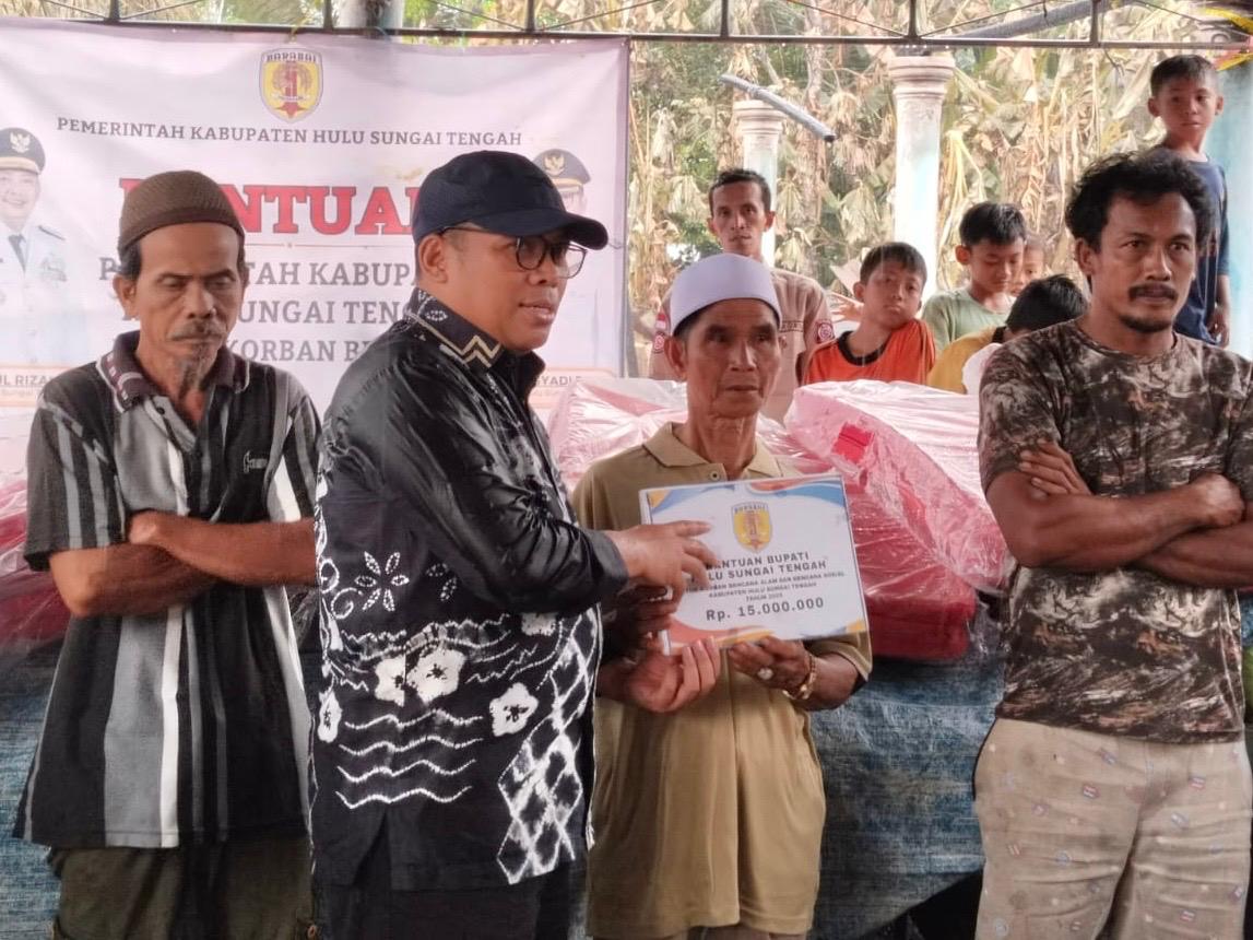 Pemerintah Kabupaten HST bergerak cepat. Hanya beberapa jam pasca-insiden, Wakil Bupati HST Gusti Rosyadi Elmi memimpin langsung penyaluran bantuan senilai total Rp125 juta plus paket sembako kepada korban.