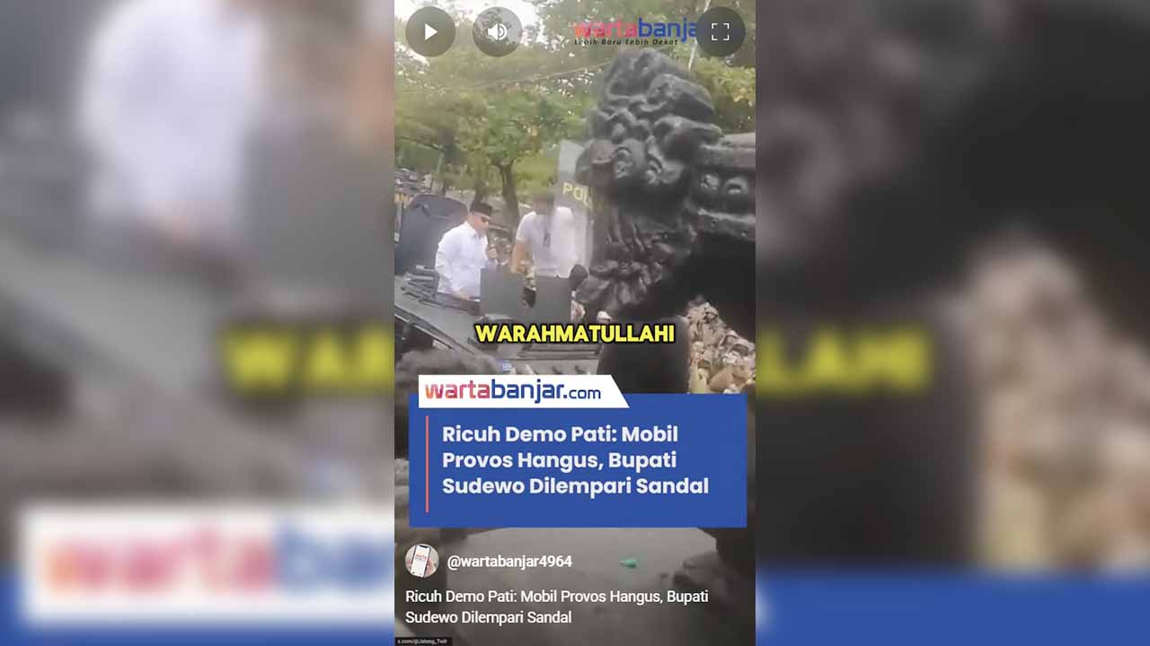 VIDEO – Ricuh Demo Pati: Mobil Provos Hangus, Bupati Sudewo Dilempari SandalSabirin DavianRabu, 13 Agustus 2025 - 17:06 WIBVideo Laman berikutnyaHalaman: 1 2Posting TerkaitUPDATE Pria di Pati Diduga Bakar Rumah Orang Tua, Ternyata Gegara Ayah Bawa Selingkuhan dan Usir IbunyaMiris! Pria di Pati Diduga Bakar Rumah Orang Tua Usai Cekcok Keluarga, Dua Bangunan Ludes TerbakarTerbongkar! Bupati Pati Diduga Jual Jabatan Perangkat Desa, KPK Ungkap Pemerasan Ratusan Juta per OrangGEGER AWAL 2026! Dua Kepala Daerah Kena OTT KPK dalam Sehari, Kemendagri Beri Warning Keras!VIDEO – Ratusan Mahasiswa Geruduk DPRD Kalsel, Tuntut Tolak Pilkada Lewat DPRDVIDEO – Permintan Tak Dipenuhi, Massa Aksi Paksa Masuk ke Kantor DPRD KalselVIDEO – Barang Jarahan Kembali, Tapi Rasa Percaya Belum TentuAROGAN! Dua Jurnalis Dibanting Saat Doorstop di DPRD Pati, Nama Ketua Dewas RSUD Jadi SorotanJangan LewatkanVIDEO – Jembatan di Desa Martadah Baru yang Jebol Akibat Banjir Segera DibangunVIDEO – Akses Ekonomi Petani Prioritas, Jembatan Desa Sungai Bakar Tanah Laut Diperbaiki Tahun iniVIDEO: BPBD Kalsel Tingkatkan Kesiapsiagaan Hadapi Ancaman Karhutla di Musim KemarauVIDEO – Ini Dugaan Penyebab Kebakaran di Kembang Melur HSTVIDEO – Antusias Tinggi Kejuaraan Domino HST Tembus 72 Tim Terbanyak di KalselVIDEO – Diburu Polisi, Pelaku Pembunuhan Ipar di Kuin Cerucuk Banjarmasin Diminta Segera Menyerahkan Diri