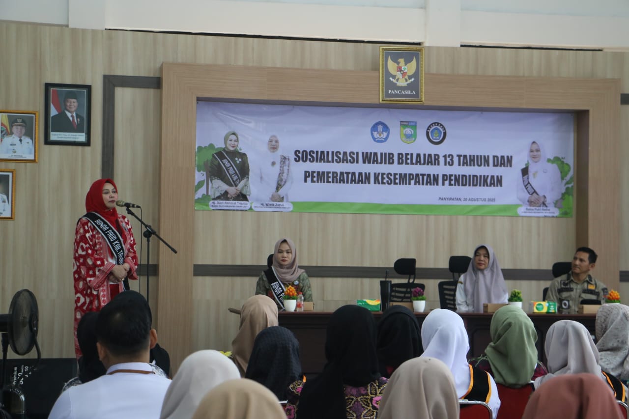 Kegiatan sosialisasi yang bertajuk “Wajib Belajar 13 Tahun dan Pemerataan Kesempatan Pendidikan” ini merupakan hasil kolaborasi antara Dinas Pendidikan dan Kebudayaan Kabupaten Tanah Laut dengan Bunda PAUD Kecamatan Panyipatan, didukung penuh oleh Camat Panyipatan.